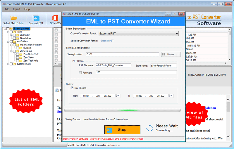 eSoftTools EML to PST Converter software, which quickly converts emails from EML files to PST, also converts unlimited EML and EMLX files in bulk for …